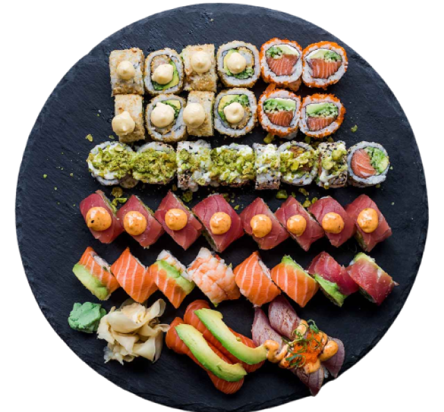Tag dagens fangst med hjem eller nyd den i en af vores restauranter. Menukortet byder på klassiske favoritter som nigiri og maki samt sunde alternativer med rispapir eller blomkålsris blanding.