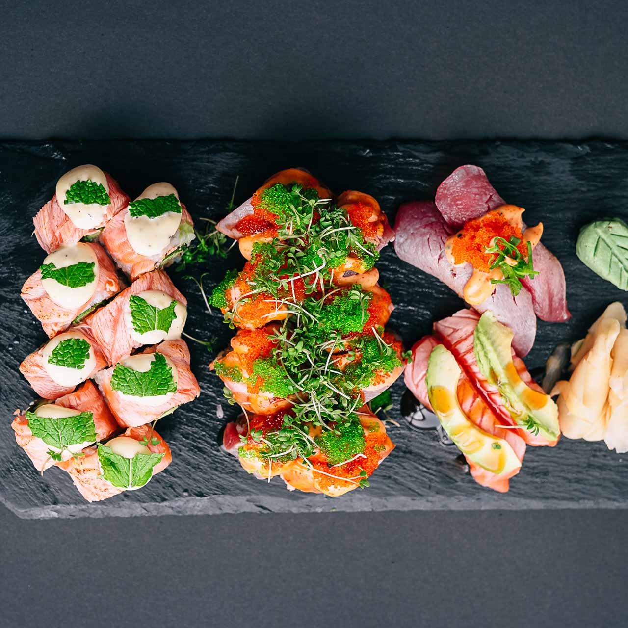 Vores fire restauranter ligger i Frederiksberg, Valby, Roskilde og Trekroner. Hvis du er sushi-sulten og befinder dig i København eller omegn, er der derfor gode muligheder for at få stillet sulten med vores lækre sushi til takeaway. Du kan for eksempel prøve et af vores lækre sushi-takeaway-menuer, som er sammensat, så både smag, indhold og variation er helt rigtig. Vores menuer er perfekte til at dele, men kan også nydes alene. Hvis du foretrækker at vælge selv, kan du også håndplukke dine yndlingsruller fra vores menu, så du får præcis den sushi, du kan lide, næste gang du vil have sushi til takeaway.