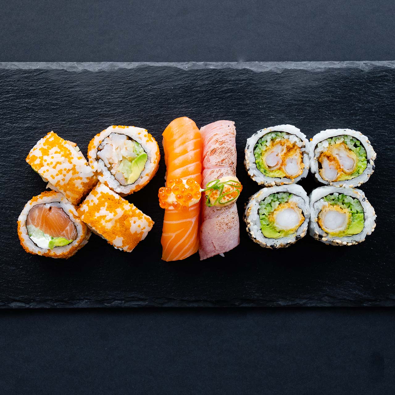 Vores fire restauranter ligger i Frederiksberg, Valby, Roskilde og Trekroner. Hvis du er sushi-sulten og befinder dig i København eller omegn, er der derfor gode muligheder for at få stillet sulten med vores lækre sushi til takeaway. Du kan for eksempel prøve et af vores lækre sushi-takeaway-menuer, som er sammensat, så både smag, indhold og variation er helt rigtig. Vores menuer er perfekte til at dele, men kan også nydes alene. Hvis du foretrækker at vælge selv, kan du også håndplukke dine yndlingsruller fra vores menu, så du får præcis den sushi, du kan lide, næste gang du vil have sushi til takeaway.